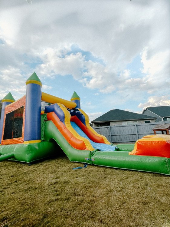 - OCCUPANCY: A maximum of 5-6 kids of equal size at one time for bounce houses, and 1 person at a time for slides is what most inflatable manufacturers recommend.